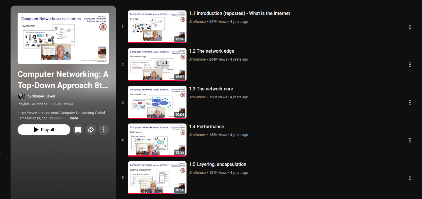 من فترة كنت ابحث عن كتاب يشرح اساسيات شبكات الحاسب، وحصلت ذا الكتاب اللي من 700 صفحة. وانا ابحث عن المؤلفين علشان اشوف لو في عندهم كتب اخرى نستفيد منها، حصلت واحد منهم مسوي كورس يمشي فيه على فصول الكتاب.