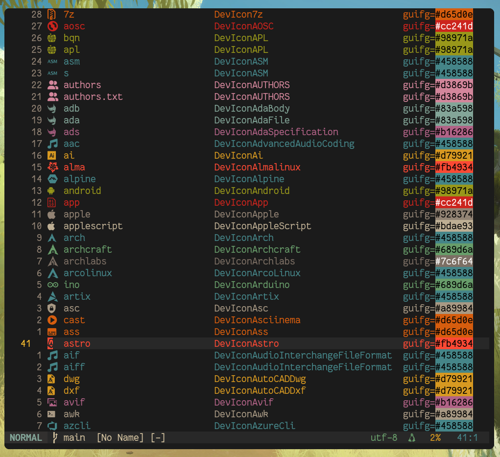 ثيم غرافبوكس لnvim صار يُلون جميع الايقونات الموجودة في إضافة nvim-web-devicon بألوان الثيم 😍