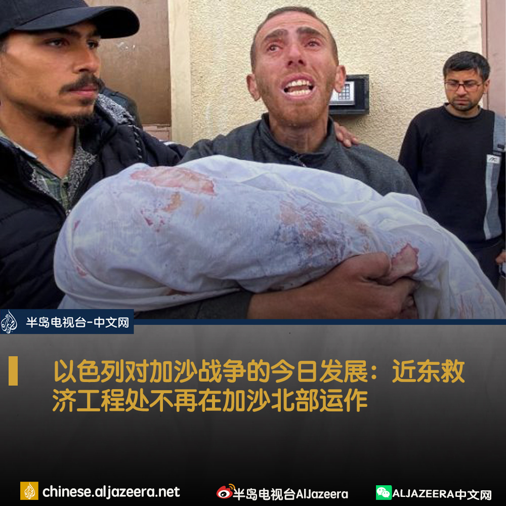 联合国巴勒斯坦难民机构近东救济工程处的代表表示,其无法再在加沙北部提供服务,理由是工作人员很少,而且以色列袭击平民以及限制粮食援助导致人们挨饿,导致“社会秩序崩溃”。