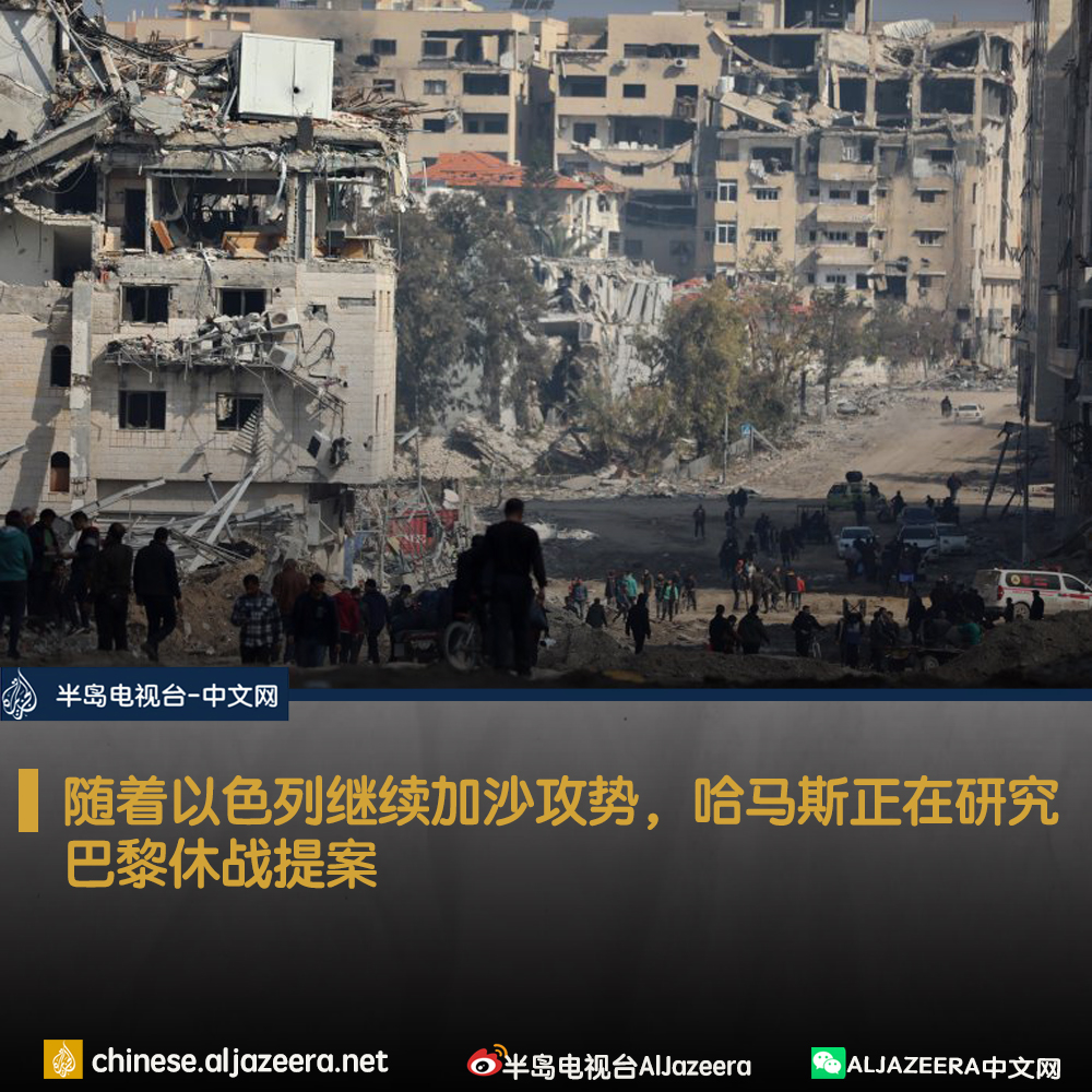 哈马斯正在研究以色列、美国、卡塔尔和埃及在巴黎提出的加沙休战和囚犯交换框架提案。
