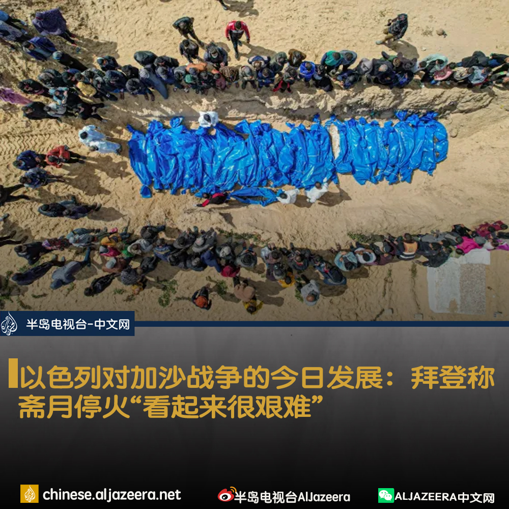 美国总统乔·拜登表示,在斋月开始之前达成加沙停火协议“看起来很困难”。 他还表示,他对东耶路撒冷没有停火的暴力事件感到担忧。