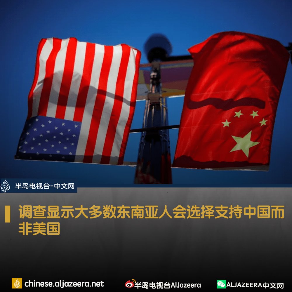 一项调查发现,如果被迫选择的话,超过一半的东南亚人会选择站在中国而非美国一边,这凸显了北京在该地区日益增长的影响力。