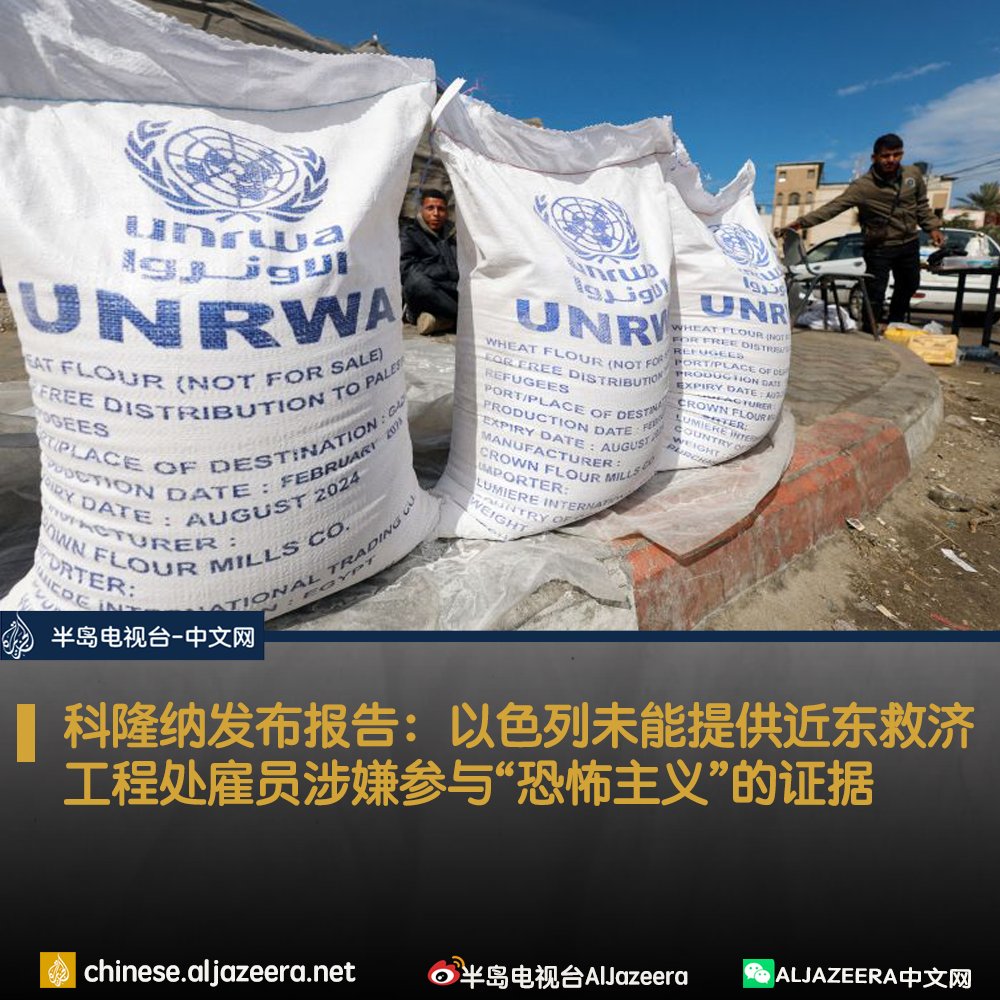 由法国前外交部长科隆纳领导的一项联合国独立审查指出,以色列没有提供可靠的证据来支持其关于近东救济工程处工作人员是“恐怖组织”成员的说法。