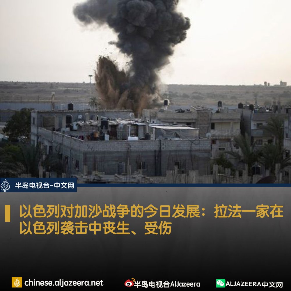 半岛电视台哈尼·马哈茂德援引民防工作人员的话称,以色列军事袭击袭击了拉法一家人位于加沙南部的家,造成三名家庭成员死亡,四人受伤。