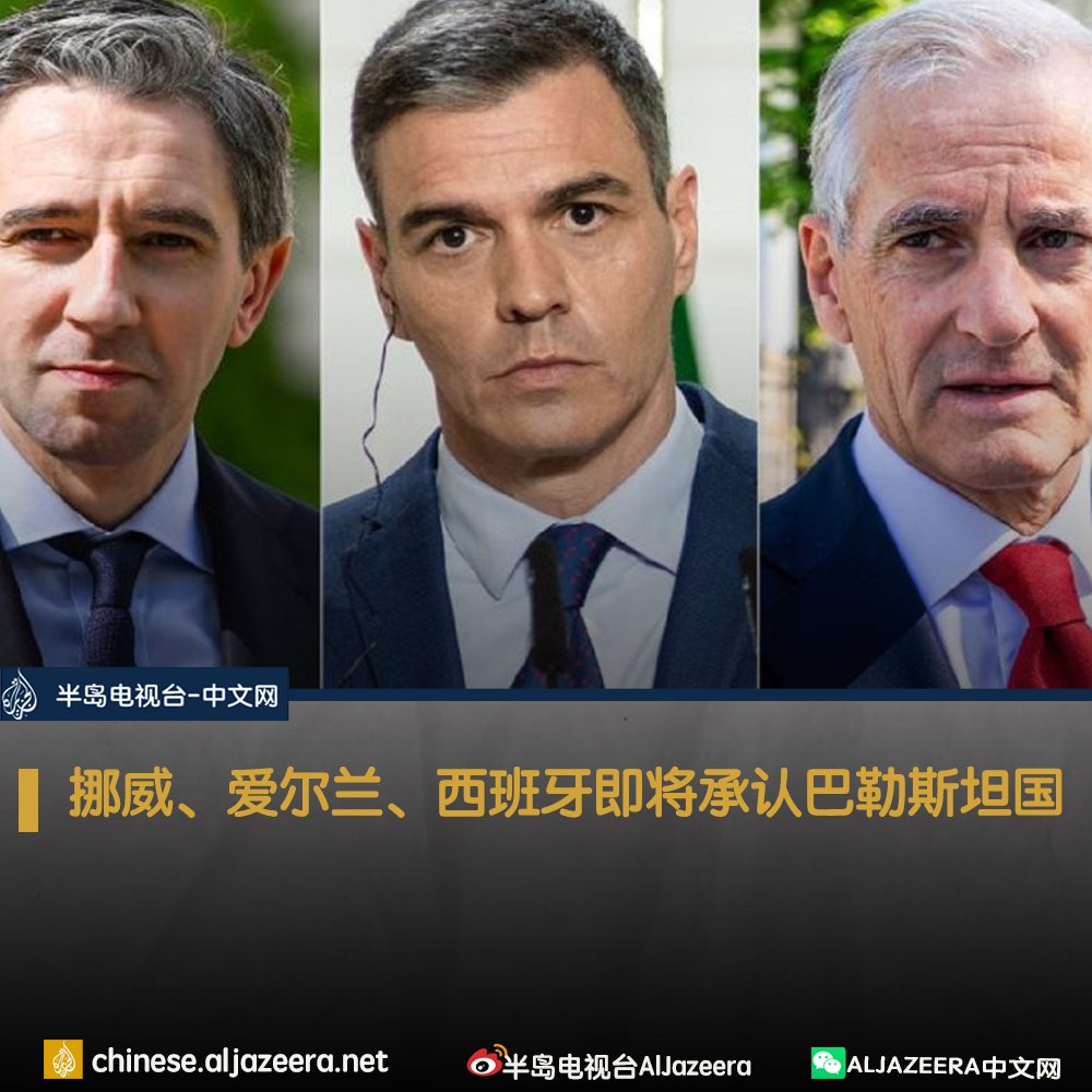 挪威、爱尔兰和西班牙领导人表示,为了促进“中东和平”,他们的国家将于下周正式承认巴勒斯坦为一个国家,而此举已促使以色列紧急召回其特使。