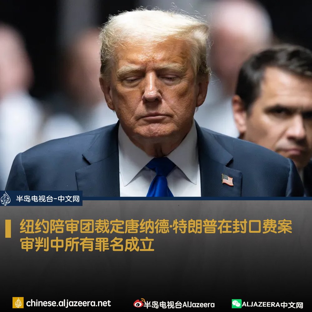 经过七周的庭审,纽约市陪审团于周四下午做出判决——特朗普面临的 34 项指控全部成立。