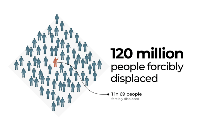 根据联合国难民事务高级专员公署(UNHCR)今天发布的一份报告,截止2023年底,全球至少有1.173亿人被迫流离失所,相当于每69人中就有1人。
