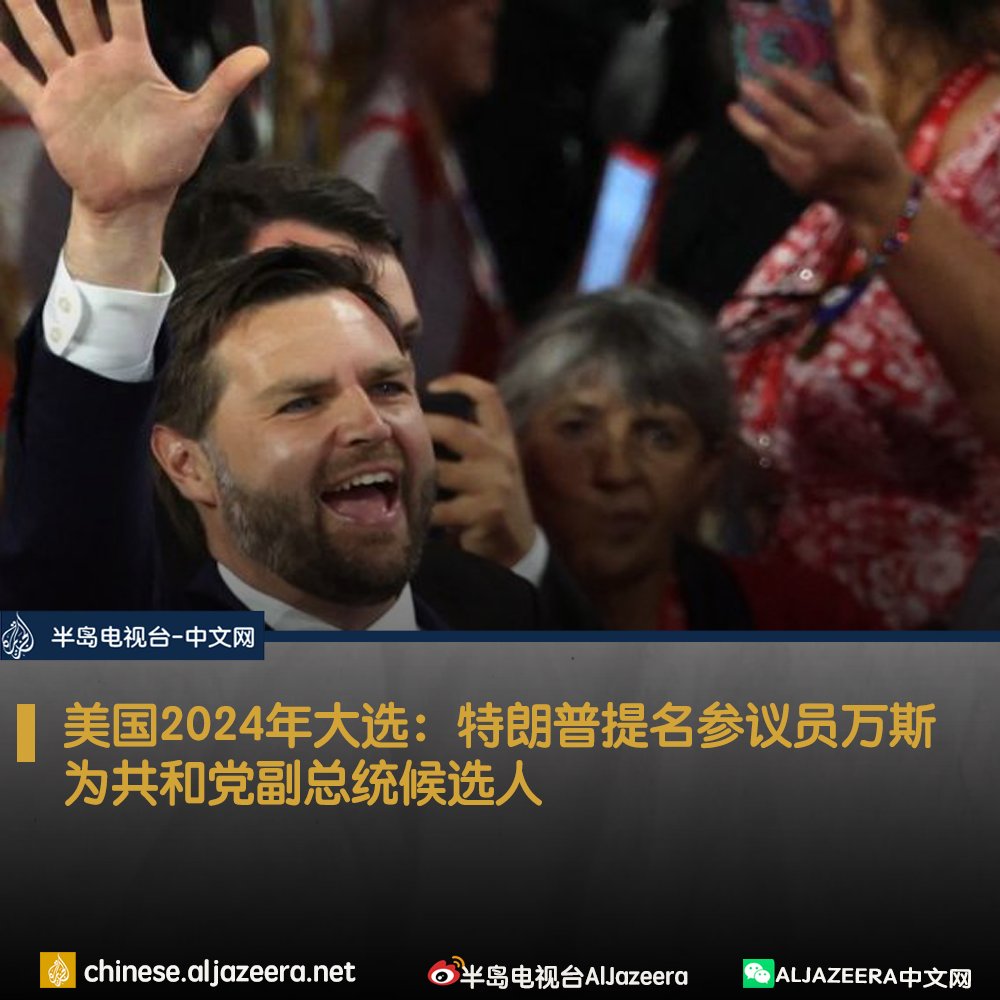唐纳德·特朗普正式被提名为共和党 11 月总统大选的候选人。俄亥俄州参议员万斯(JD Vance)被特朗普选为竞选搭档。