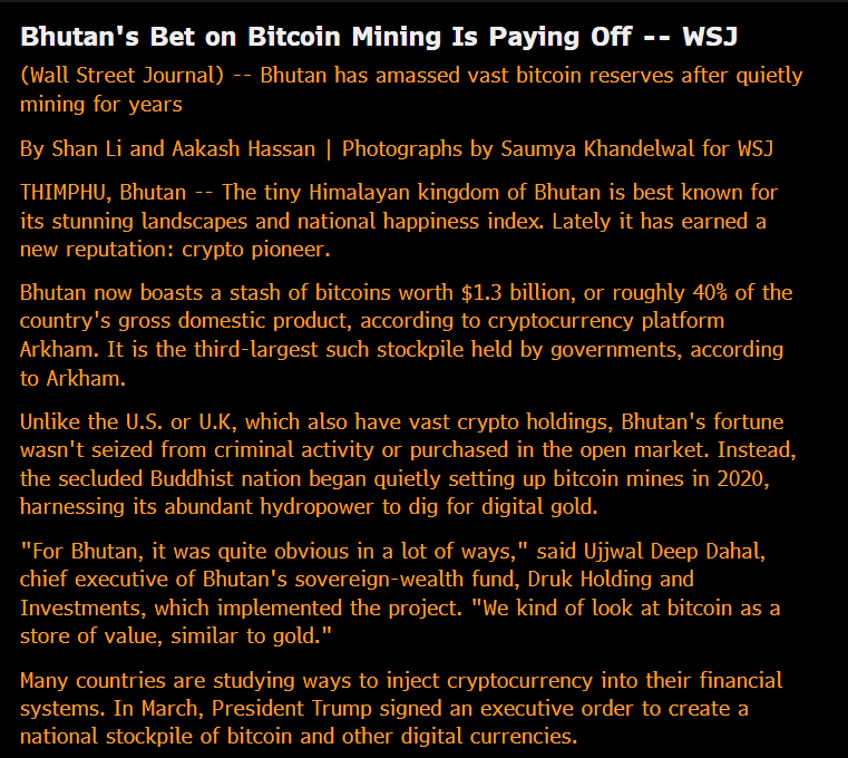 Bhutan quietly mined #Bitcoin for years, now it holds 40% of its GDP in BTC.