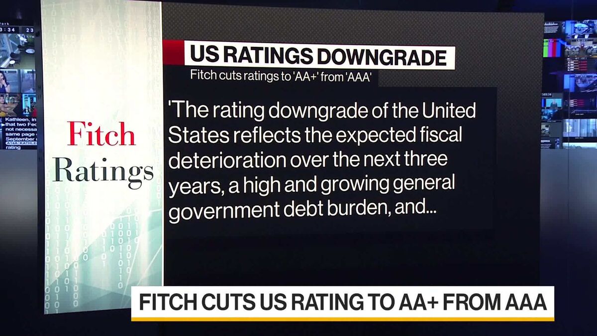 Fitch Ratings has downgraded US's long-term foreign currency debt rating to AA+ from AAA. Treasury Secretary Janet Yellen said in a statement that she "strongly" disagrees with Fitch's decision. Kathleen Hays reports on Bloomberg Television. (Source: Bloomberg) #press