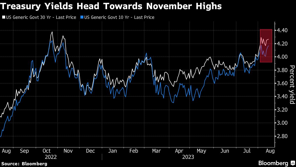 Treasury yields began the week on the back foot, edging up toward levels last seen in November as inflation jitters curb the demand for US debt. #press