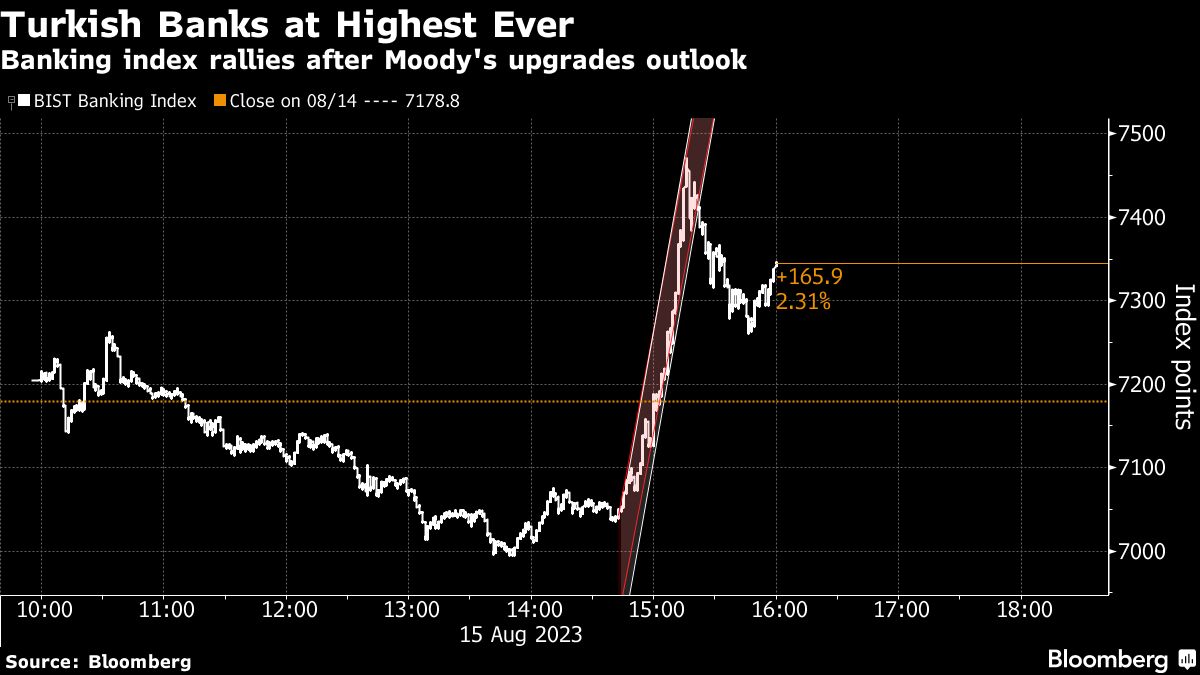 Turkish Banks Jump After Moody’s Lifts Sector Outlook to Stable
