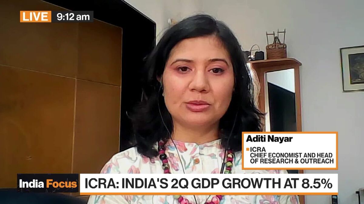 ICRA Chief Economist, Head of Research & Outreach Aditi Nayar estimates India's FY2024 economic growth at 6 percent, lower than the central bank's projection of 6.5 percent. She speaks with Menaka Doshi, Haslinda Amin and Rishaad Salamat on "Bloomberg Markets: Asia". (Source: Bloomberg) #press
