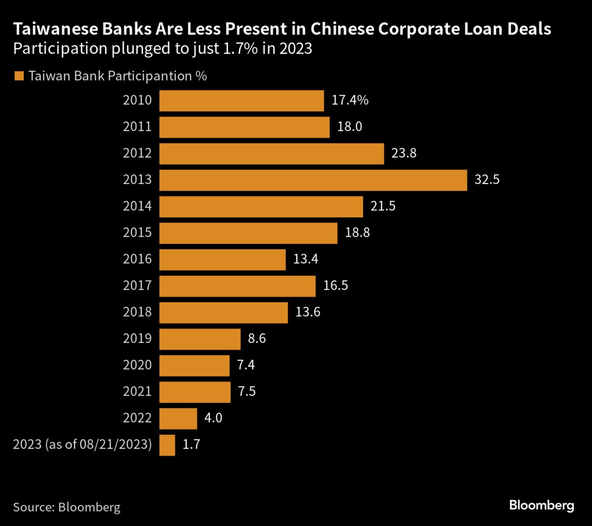 Taiwan Banks’ Participation in China Loans Falls to Record Low