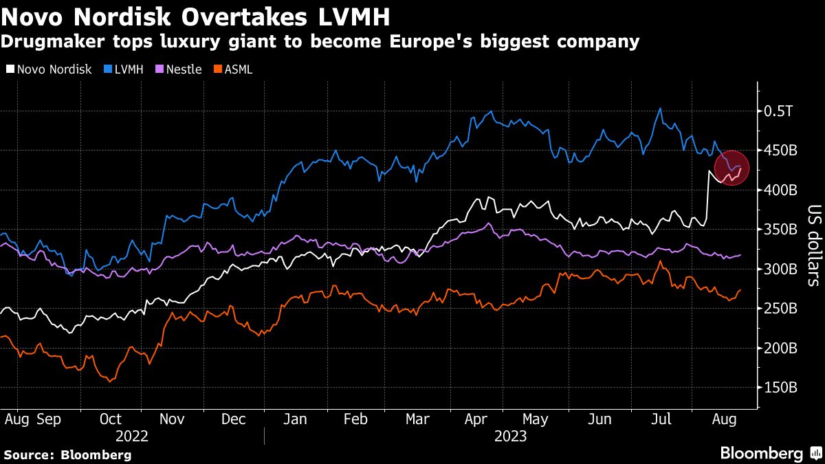 Novo Nordisk Briefly Overtakes LVMH as Biggest European Company