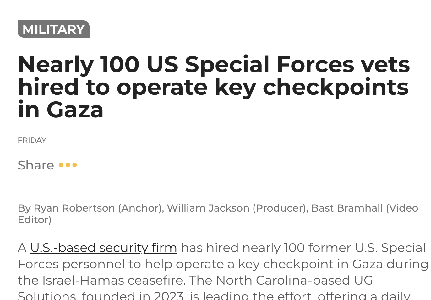 US MILITARY CONTRACTORS ALREADY IN GAZA