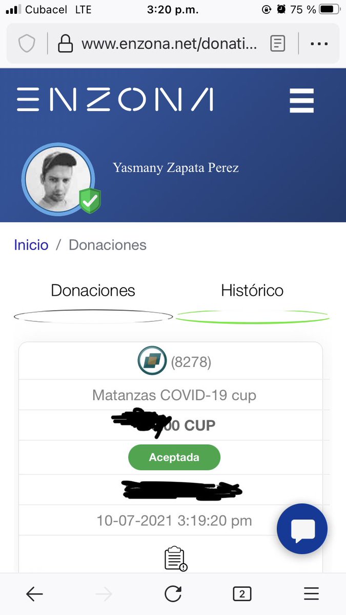 En estos momentos hice una donación a la Provincia de Matanzas desde mi @ENZONA_BX para la lucha contra la #COVIDー19