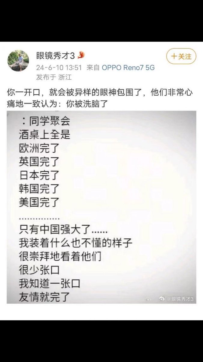 没错,俺滴妹就说过我被洗脑了,为了不伤害姊妹感情,也为了她在国内幸福地活到人生的终点站,我保持闭嘴,因为心瞎是不死的癌症,无药可治。 https://t.co/4cyjBYCOk9