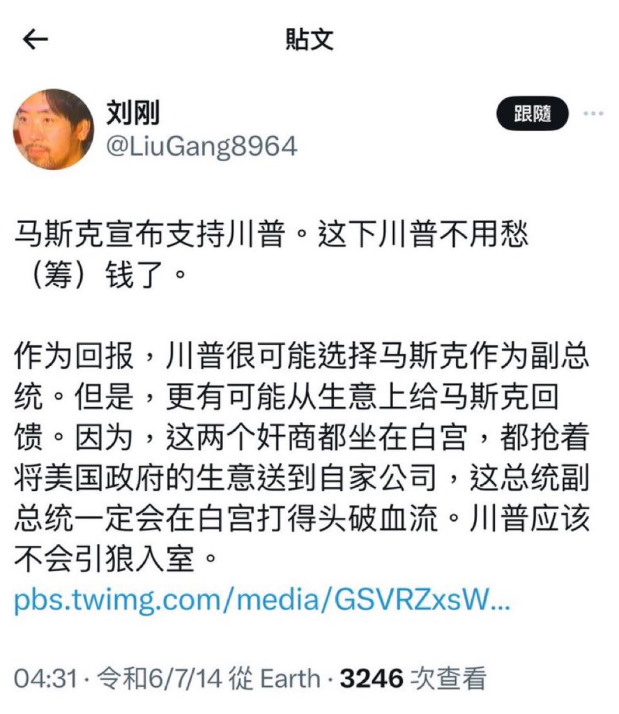 马斯克公开为川普成为美国下一届总统背书,希望他尽快恢复健康👍👍👍