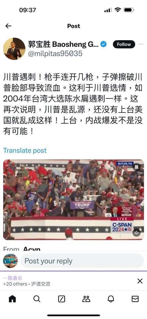 简中推不一样,除了看热闹,对川普指指点点。更有甚者,还对罪犯大加抬举 :枪手是白人,不是LGDPQ,不是黑人,不是民主党。呵呵,一百年后,大清在海外,依然是大清的传人👍😁