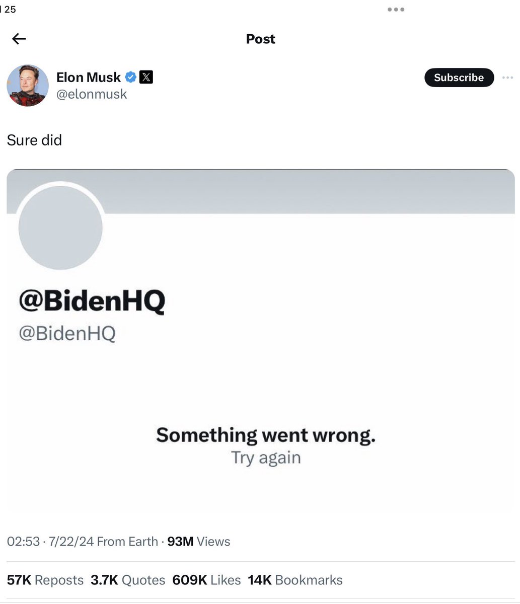 哈哈,拜登拉黑了马斯克,难道是因为马斯克说哈里斯是木偶吗😂 https://t.co/J6TJvgOINm