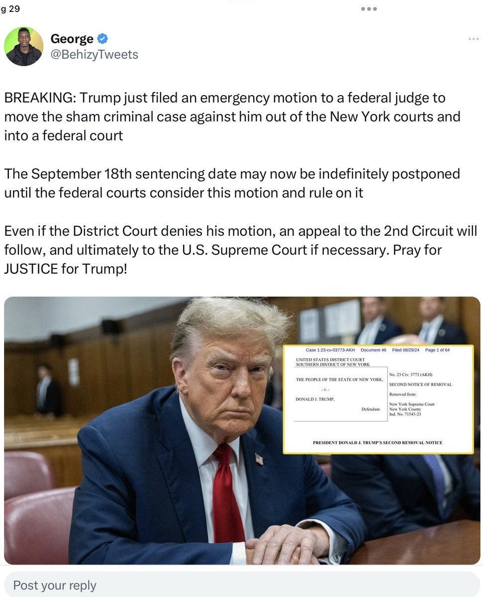 即使地方法院驳回了他的动议,他也将向第二巡回上诉法院提起上诉,并在必要时最终向美国最高法院提起上诉🙏❤️🙏 https://t.co/GNkTco3fIg