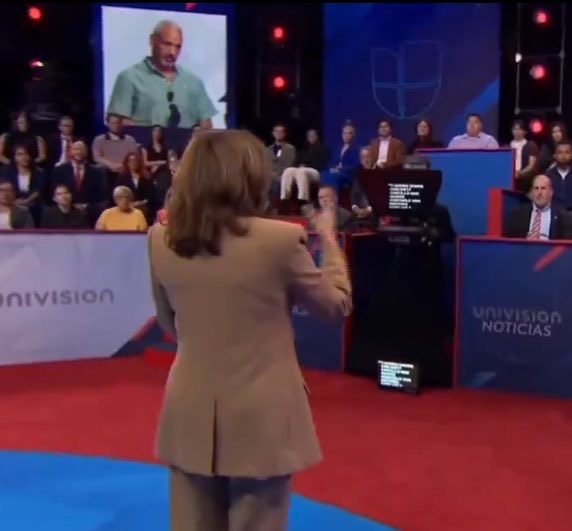 这就是卡玛拉·哈里斯在她完全没有剧本的Univision电视广告中看提词器演讲。