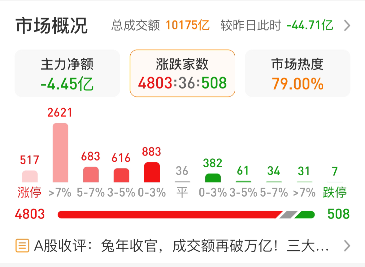 517家涨停,2620家涨幅超过7%,年前最后一天果然是红包行情。今天国家队重点发力了中证2000,几只中证2000ETF被拉爆,成交额均创历史新高。尾盘再次出手护盘沪深300,确保了今天三大指数画出一条完美弧线,给上班第一天的新主席一个满意的交代。