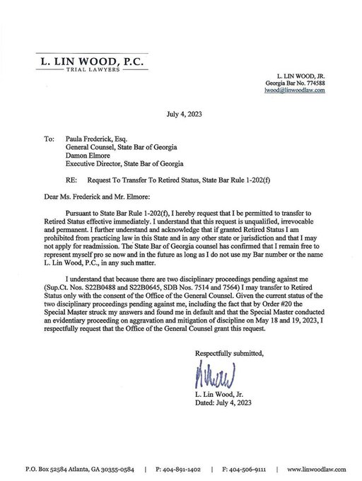 川粉红粉明星律师,林伍德大律师 Lin Wood,不再是律师了!林伍德是川普/特朗普最忠诚的律师。他与川普同谋,推翻2020美国选举。他向法院包括最高法院上报多起虚假案例。由此,律师资格要被取消。他主动放弃律师执照。永不律师。以换取不被取消律师资格。 https://t.co/nHg5XxoiiM