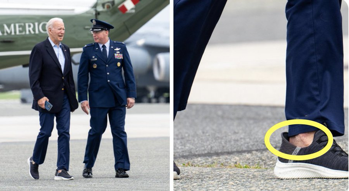 白左拜登总统,被人发现,他穿运动鞋,却没有穿袜子。红右媒体:拜登痴呆了。。。。。
