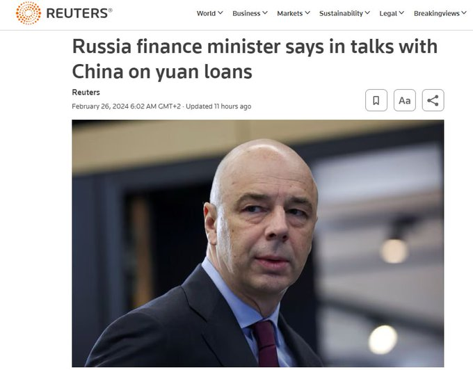 俄罗斯财政部长西卢阿诺夫:俄罗斯仍然计划从中国获得人民币贷款 “与中国合作伙伴的谈判已经进行了很长时间。目前还没有解决方案。我们在去年年底的部际对话中讨论了这个话题。”