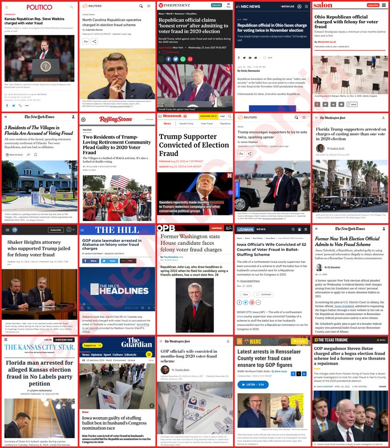 2020年和2022年,美国选举选民欺诈,被美国地方检察院起诉定罪名单,几乎都是共和党的嘛噶川粉。