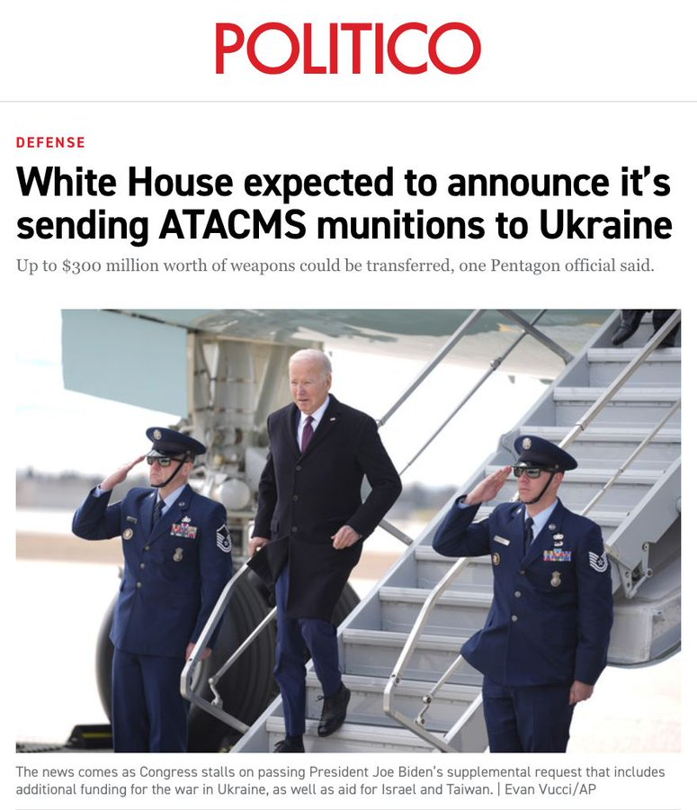 美国今天将宣布,美国总统拜登(经典白左)打算向乌克兰发送 ATACMS 导弹,作为新军事援助计划的一部分。 https://t.co/ZTTBoNJOq7