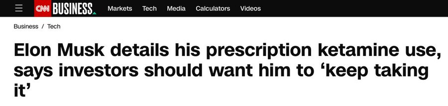 马斯克澄清说,他的病情并不取决于负面消息。但他必须服用氯胺酮,因为他“通常每天工作16个小时”。 https://t.co/3LSrFjM1U5