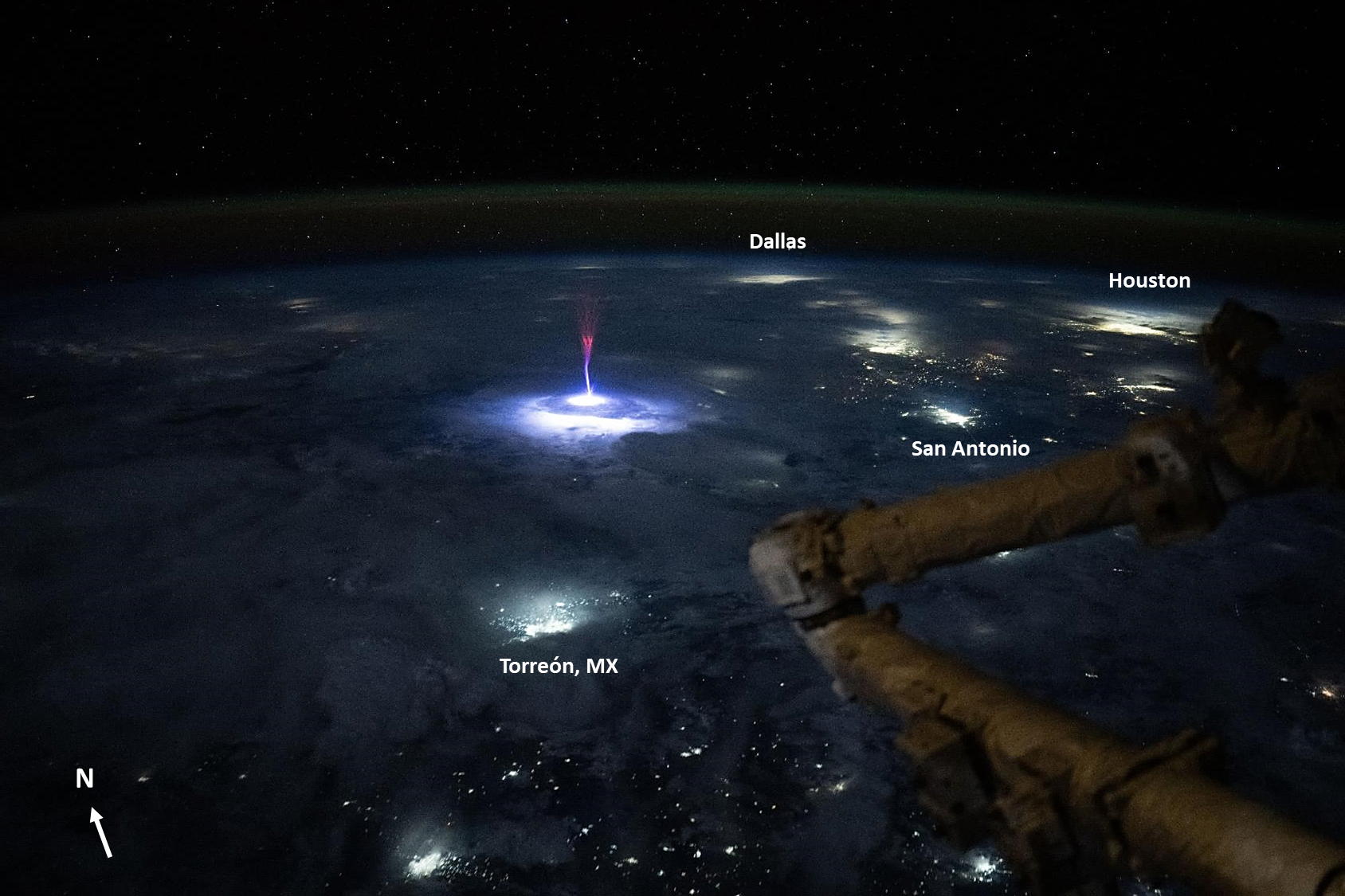 This is a spectacular image of a Sprite taken by astronaut Nichole “Vapor” Ayers from the ISS on July 3, who wrote -