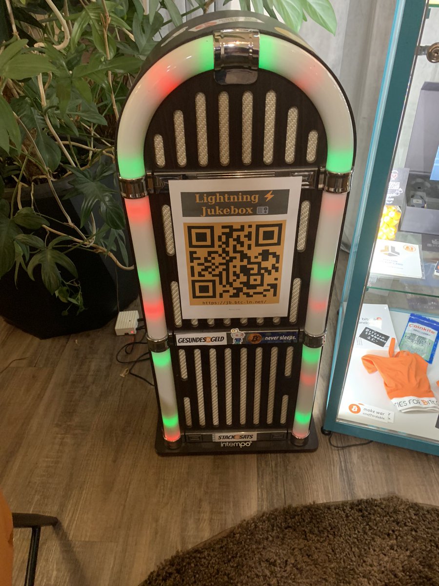 Gestern war ein Zeitungs-Reporter zu Besuch, dann hab ich ihm unsere Lightning Jukebox gezeigt. Ich hab ihm erklärt das es nur #bitcoin songs und Pleb-Rap gibt.