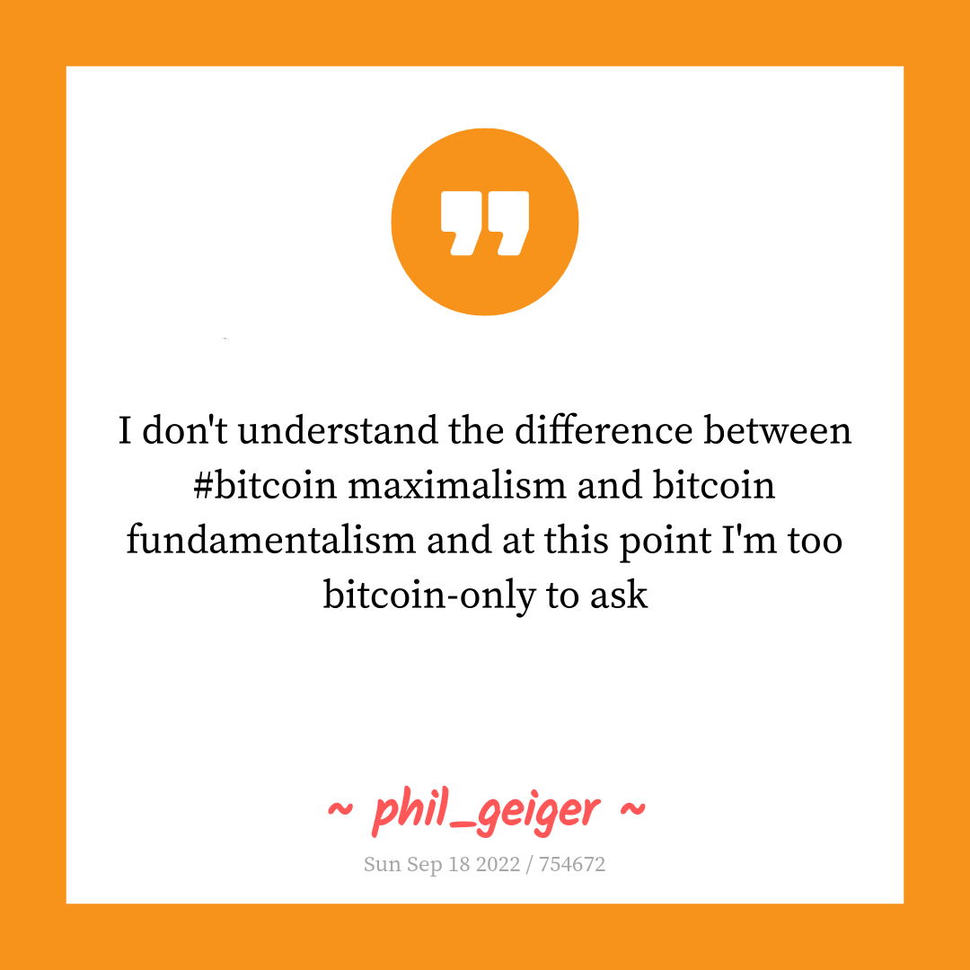 I don't understand the difference between #bitcoin maximalism and bitcoin fundamentalism and at this point I'm too bitcoin-only to ask