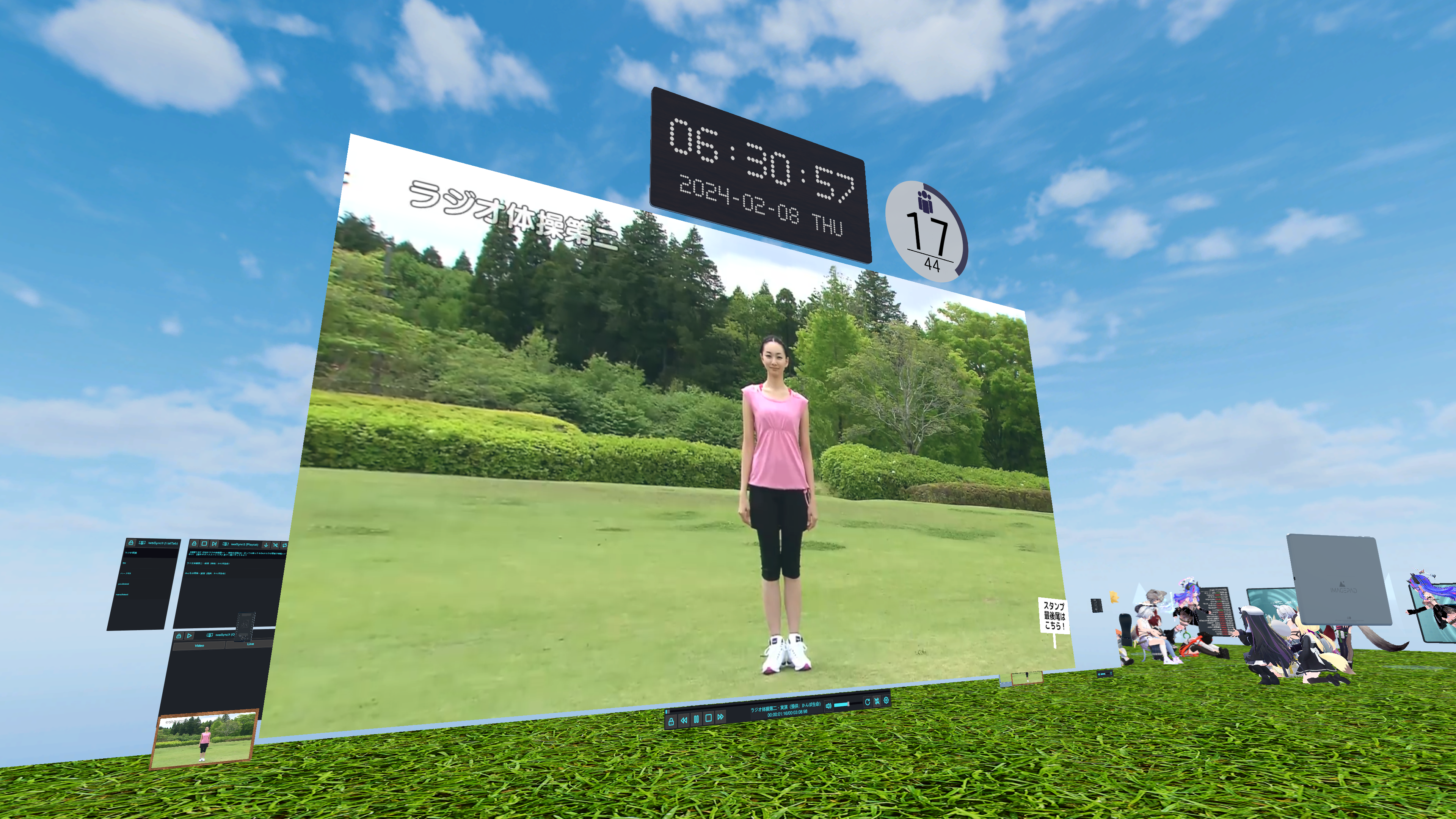 今日も元気に朝のVRChatラジオ体操!今日はちょい遅刻したので補欠組。てかラジオ体操第二ってこんなんだっけ(今更)