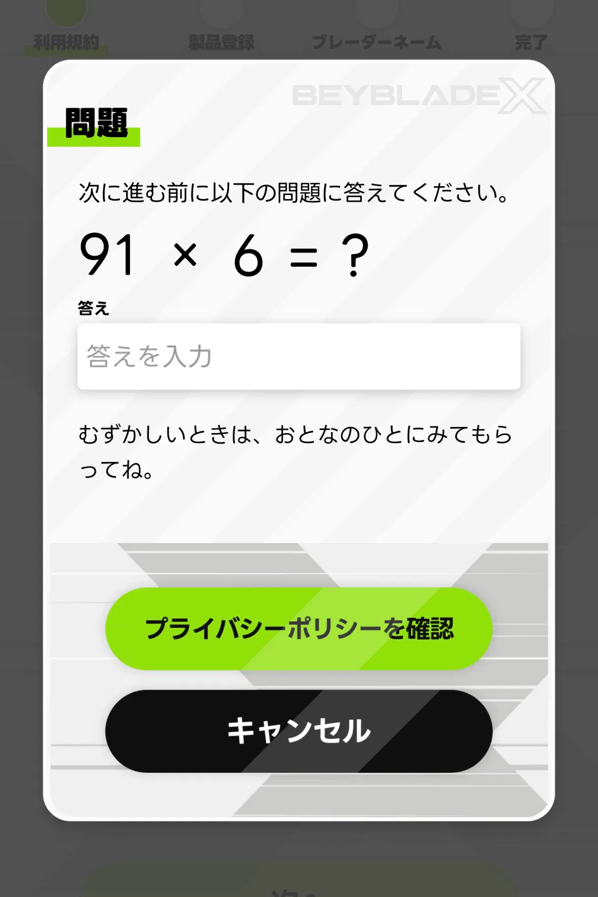 帰りの電車でベイバトルパスのスマートフォンアプリ入れてみたら新規登録画面でこれ出て草生えた