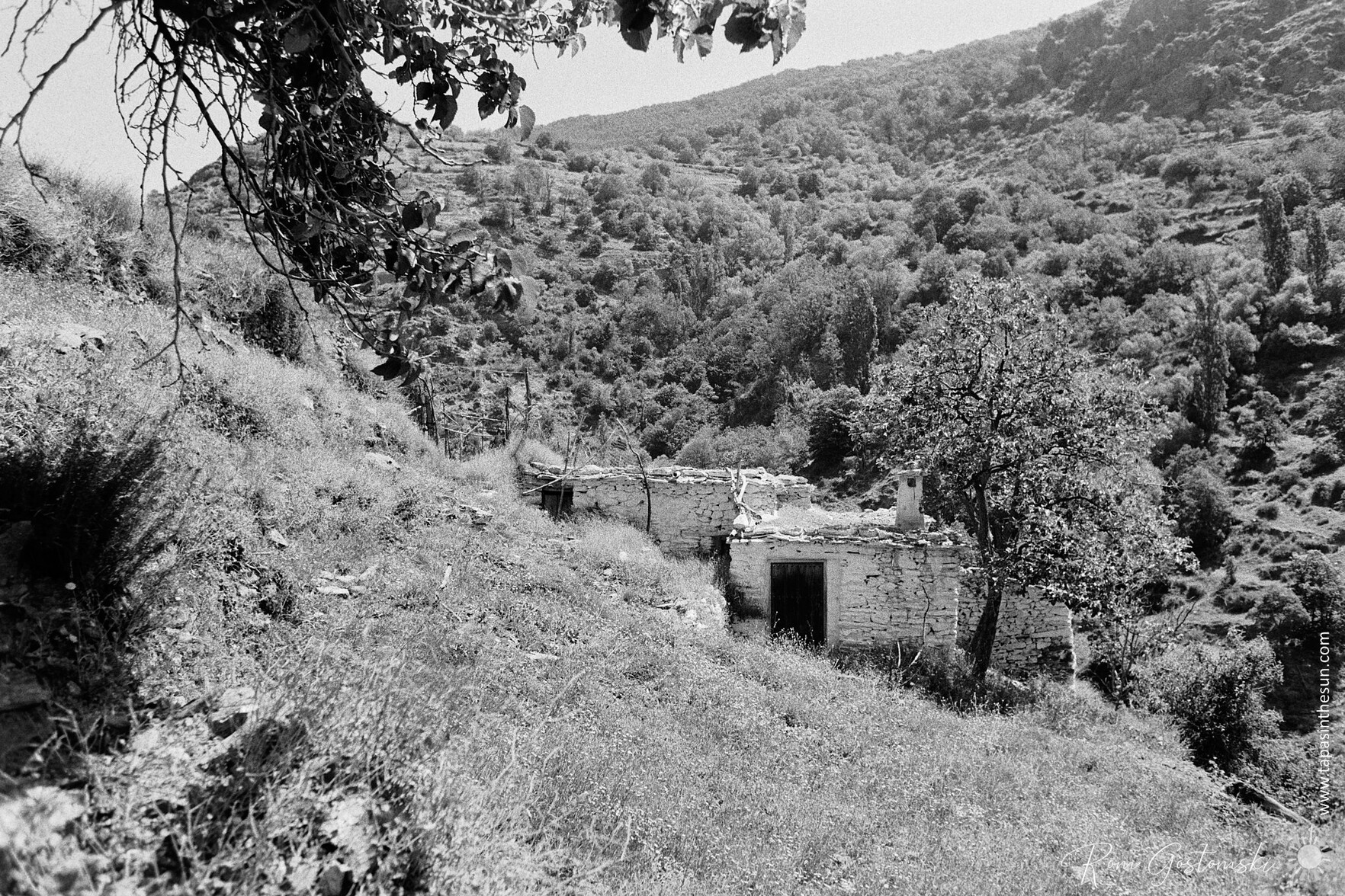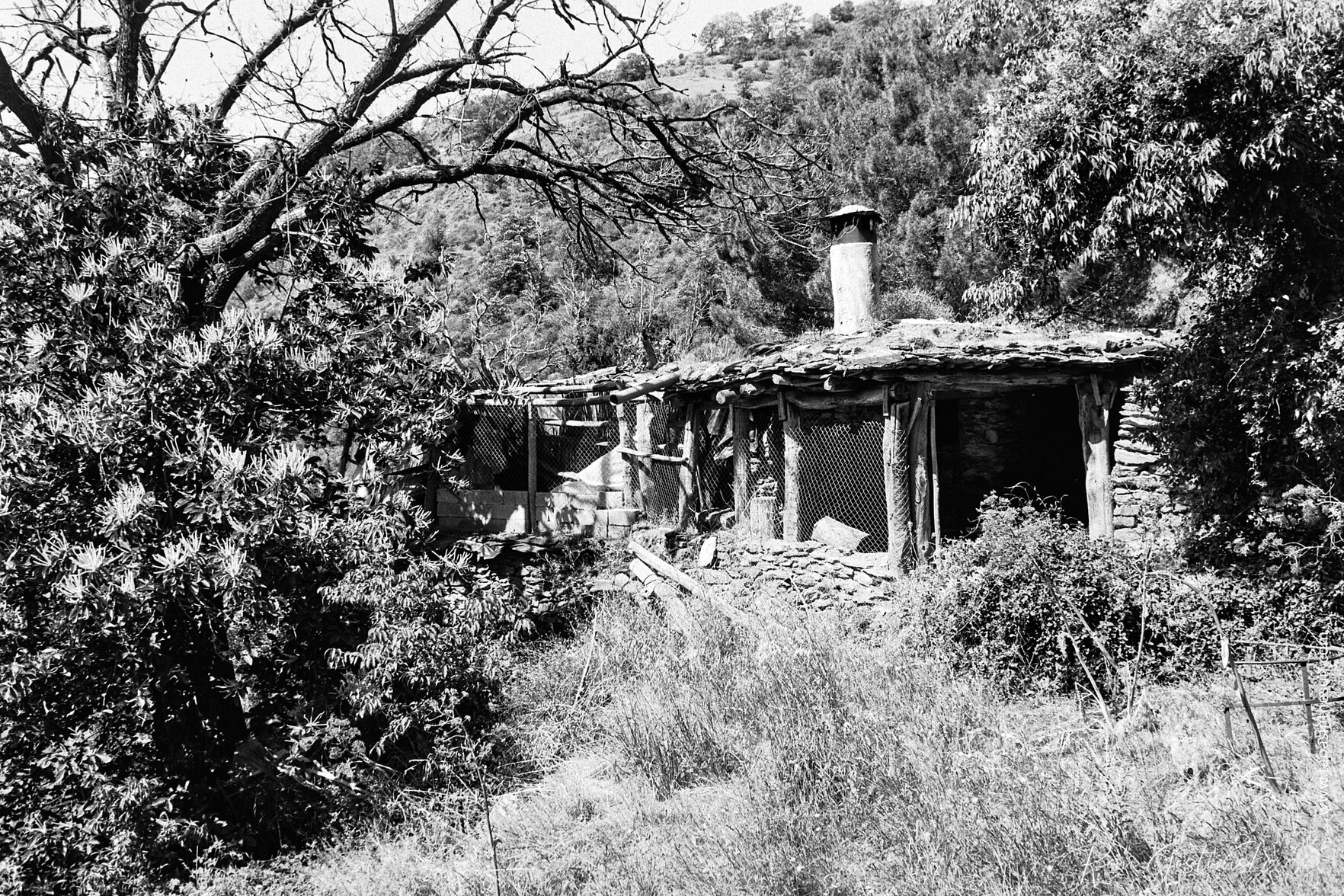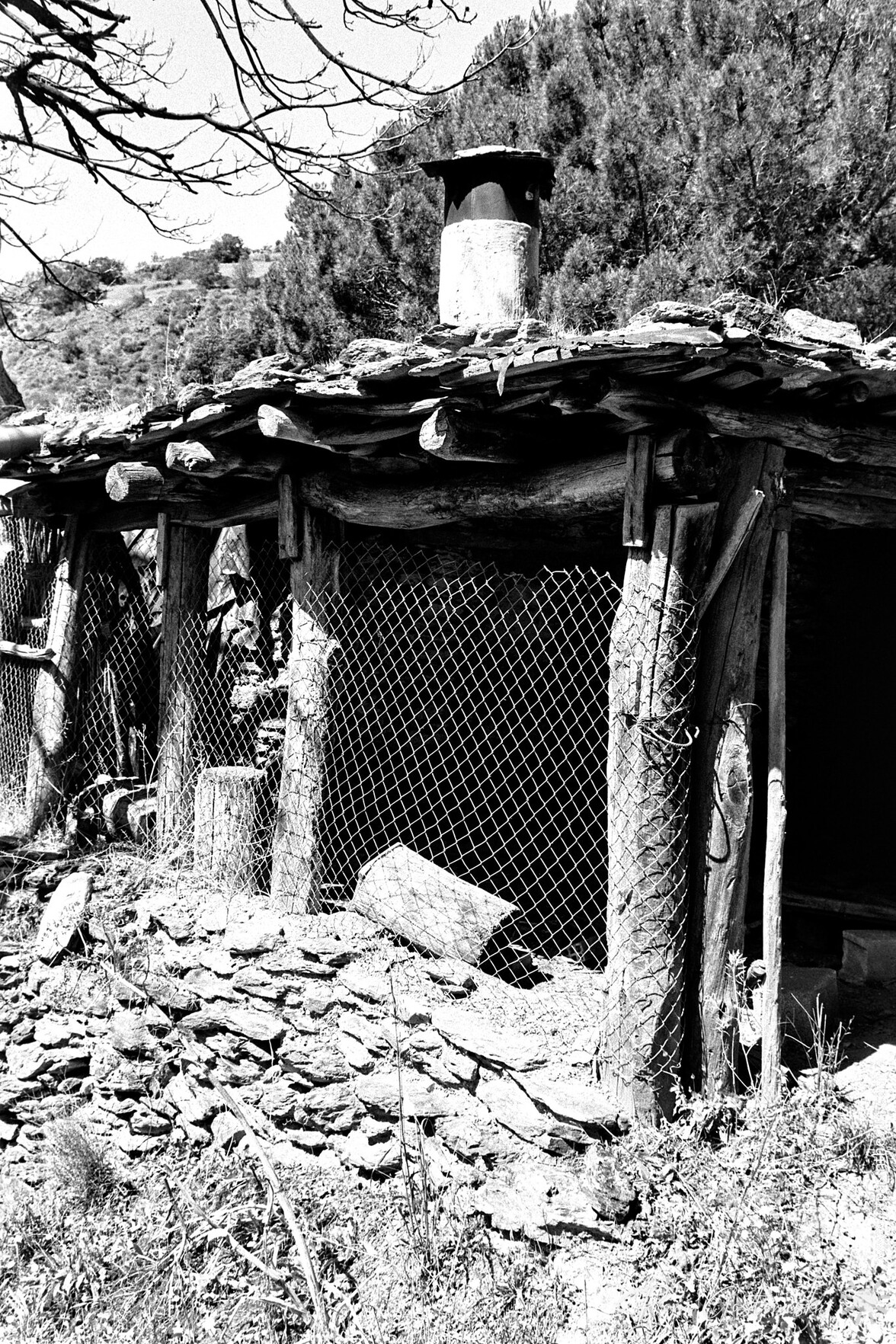 This dwelling is now abandoned, but in 2009 it was in use. Such a remote place with no vehicle access. The outer parts with wire mesh used to be animal pens.