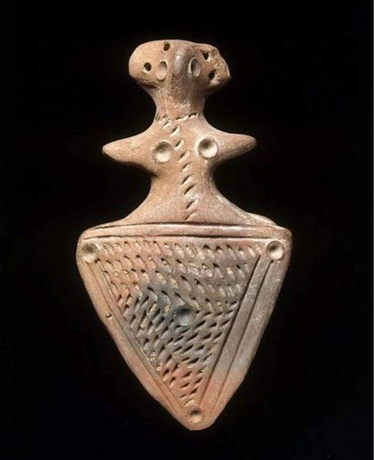 陶瓷女神雕像(公元前 1500 年),其面部和头部类似于塞浦路斯的鸟女神雕像。