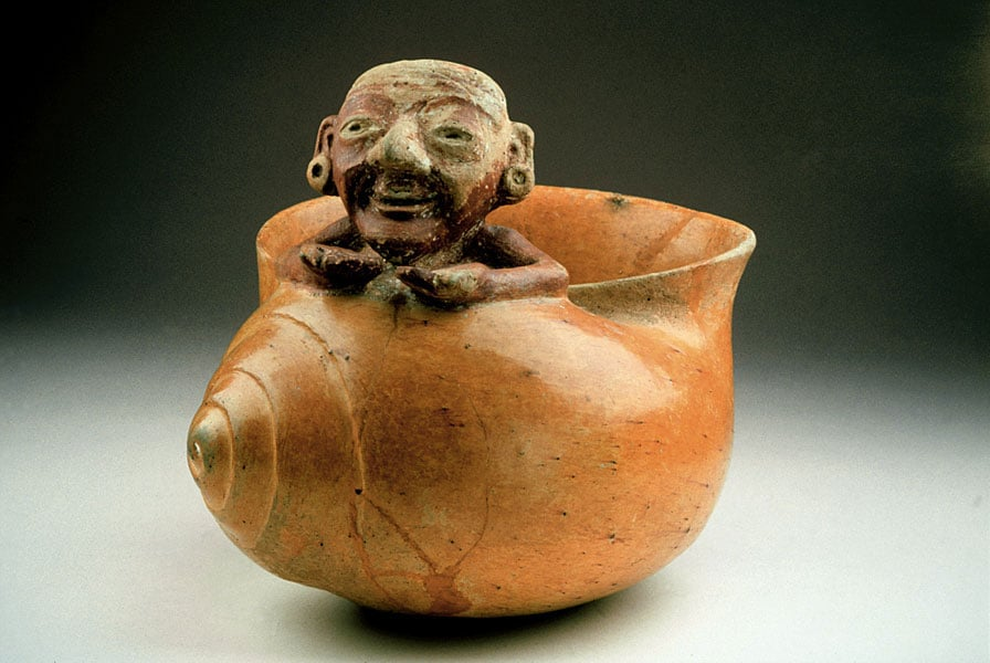 一位老人从蜗牛壳中爬出,玛雅器皿,古典时期晚期(公元 600-900 年)。现陈列于墨西哥国家人类学博物馆。