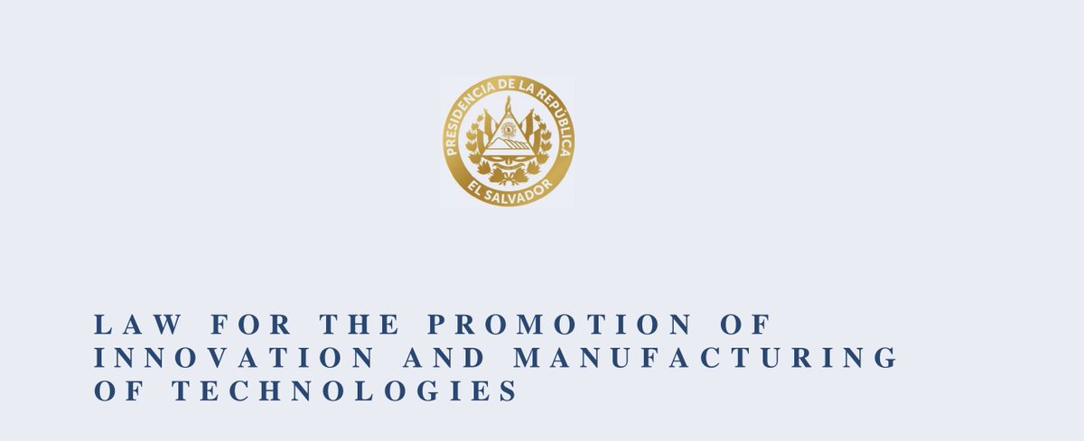 RT by @maxkeiser: Download the English translation PDF of the new law in El Salvador for the promotion of innovation and manufacturing of technologies