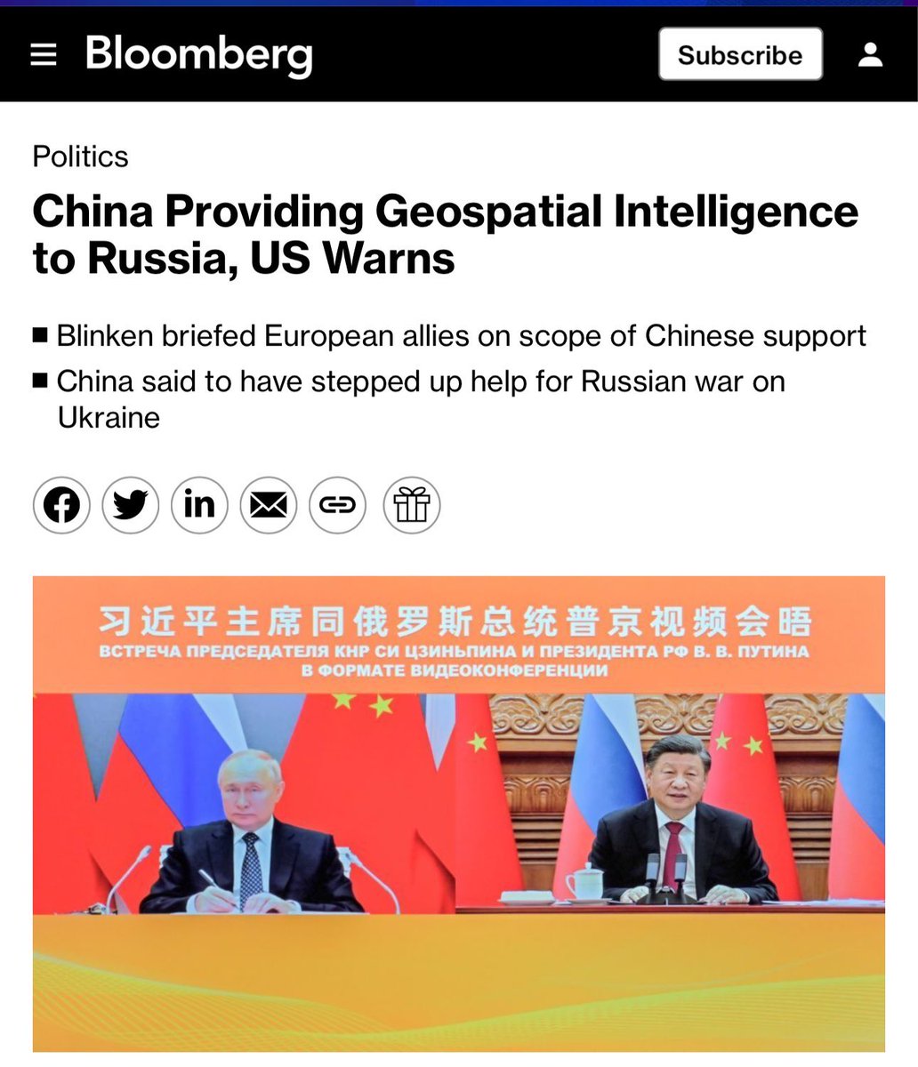 🔥🚨中國向俄羅斯提供了用於軍事目的的衛星圖像,以及坦克用的微電子和工具機。