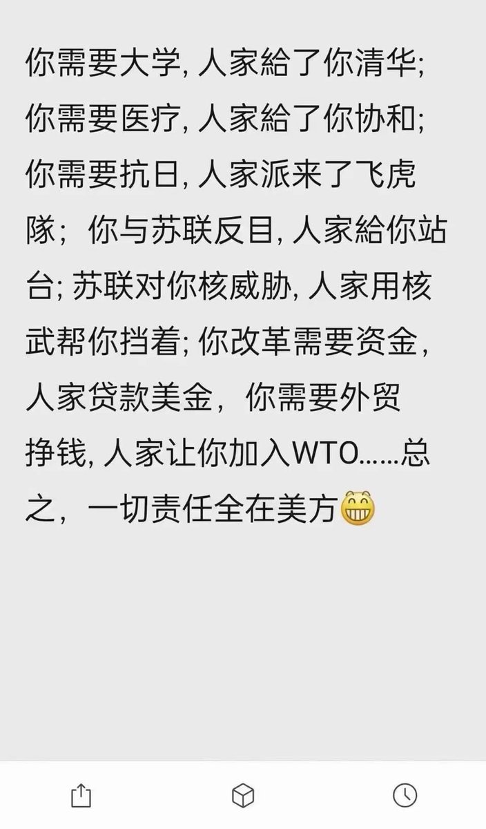 这个不公平,前三项是给中国人民的,中国人民心怀感激,后面那些都是给篡政的极权独裁者,当时的美国政府是受了基辛格那个老傻逼的误导,所以我一直说一切责任都在基辛格那个老傻逼…