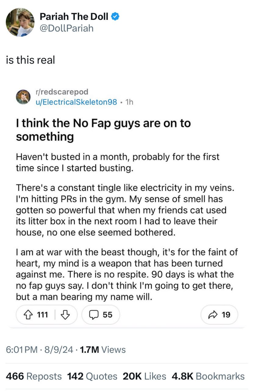 It reminds me of a quote I once read: "I donโt think Iโm going to get there, but a man bearing my name will." (Granted, it was about No Nut November, but letโs not spoil the moment.)
