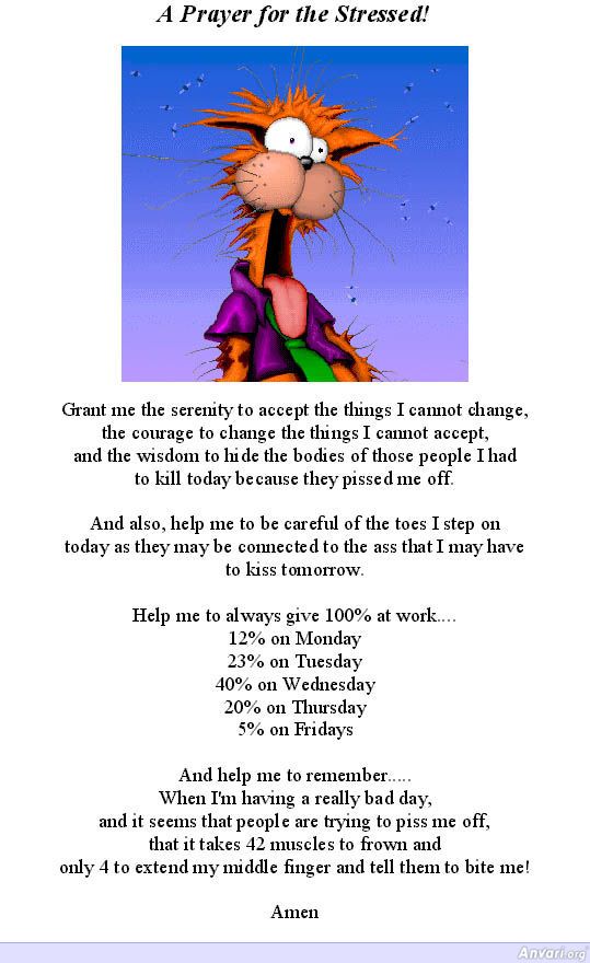 When I'm having a really bad day, and it seems that people are trying to piss me off, that it takes 42 muscles to frown and only 4 to extend my middle finger and tell them to bite me.