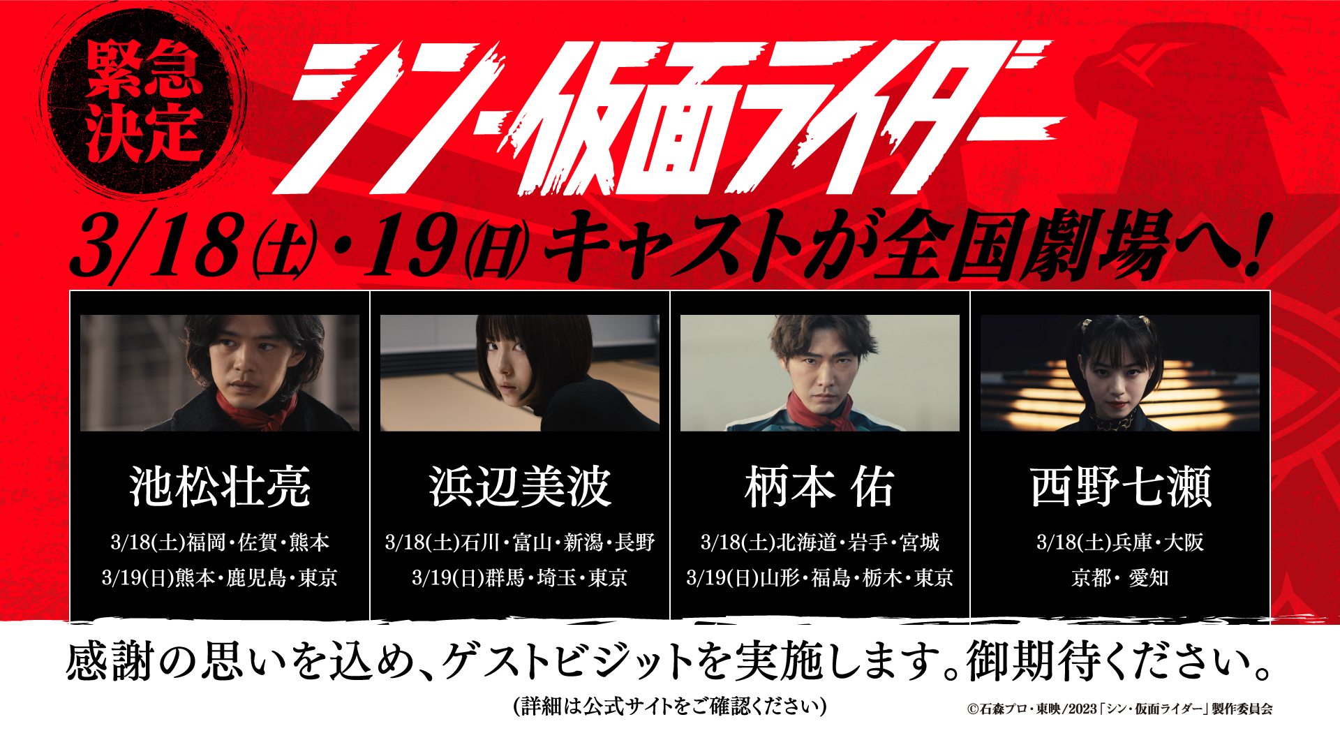 3月18日(土)、3月19日(日)に『シン・仮面ライダー』キャストによるゲストビジットの実施が決定
