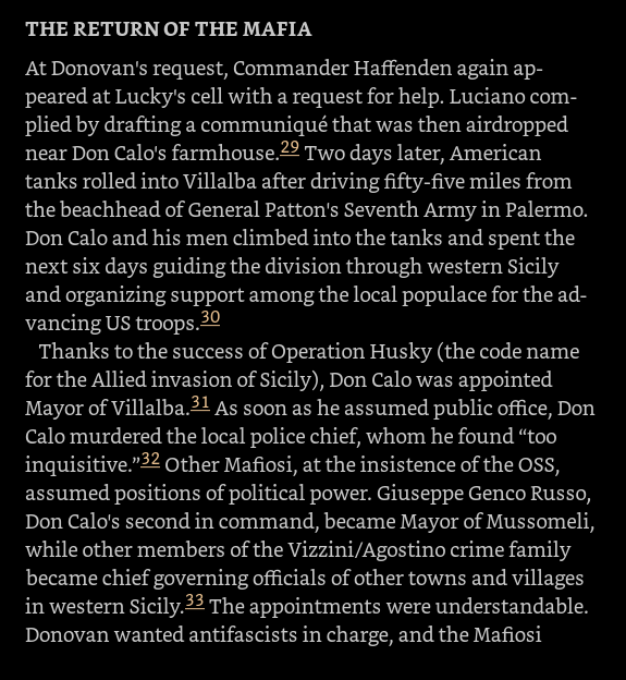 Remember uncle Sam used Lucky Luciano and the Mafia to, in their words, "break" Italy. Probably a similar dynamic here.