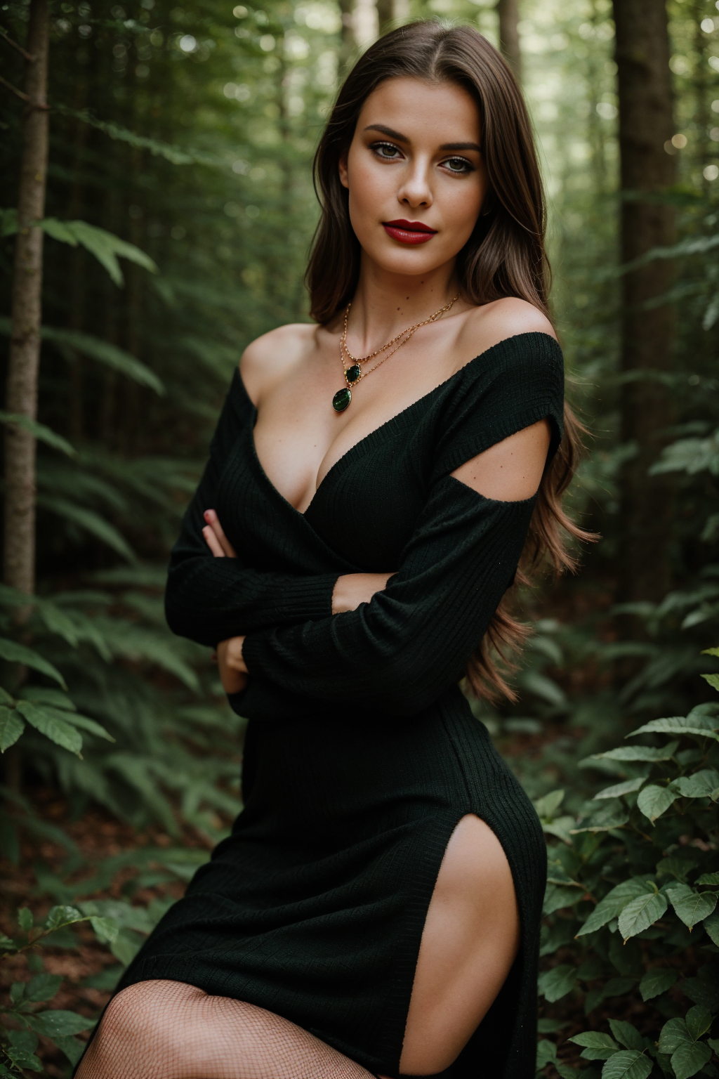 Prompt: “35 mm, 50mm, 15mm, “girl soft lighting, with the background featuring a starry night sky and a forest”, by sarah moon”